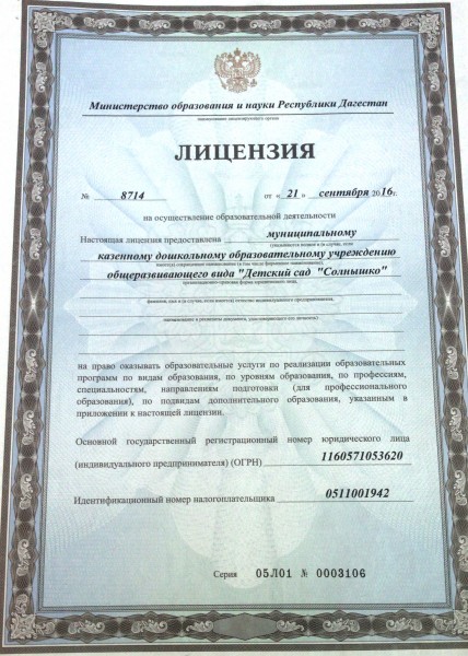 Полное наименование образовательной организации* Муниципальное бюджетное образовательное учреждение общеразвивающего вида " Детский сад "Солнышко"