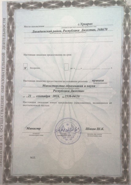 Адрес местонахождения образовательной организации* 368570 ,с.Уркарах, Дахадаевский район, республика Дагестан